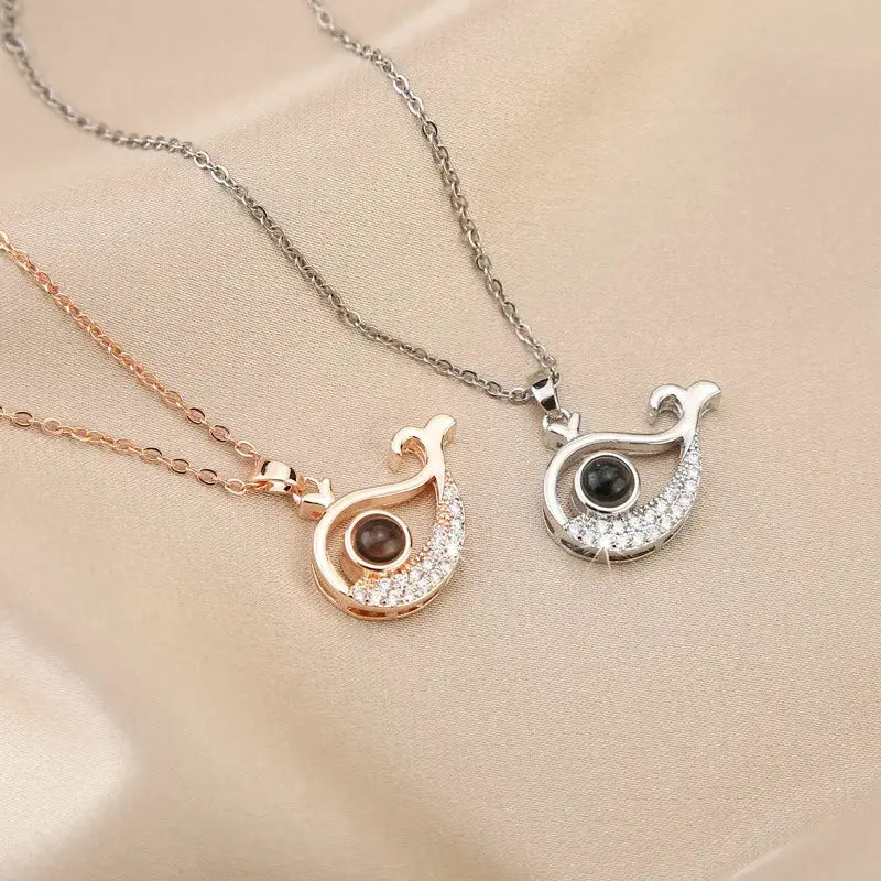 Offrez-lui un cadeau unique avec notre collier baleine personnalisé photo. Ce bijou raffiné allie élégance et sentimentalisme en projetant l'image de votre choix. Idéal pour les anniversaires ou la Saint-Valentin, ce collier immortalise vos plus beaux souvenirs et marquera à jamais ceux qui le recevront. Une création à porter près du cœur, parfaite pour exprimer votre amour de façon originale et touchante.